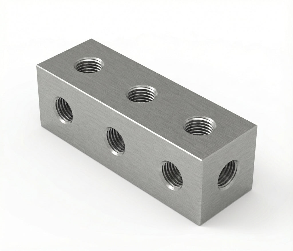 8mm square aluminum bar with M4 tapped holes on all four sides (aligned). Available in 3-hole length with tapped ends for end-to-end connections. Lightweight, strong structural solution for FTC/FRC robotics with M4 tapped holes.